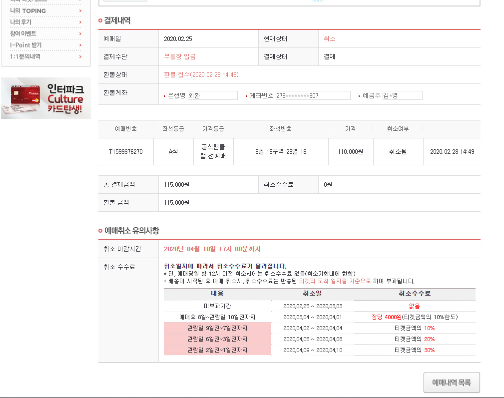 콘서트가 지 멋대로 캔슬되었다.