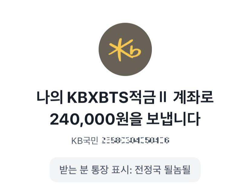 생일날에는 BTS적금에 이자가 더 붙기 때문에 간만에 적금부었다.