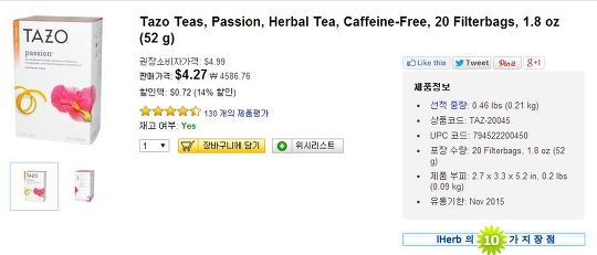 아이허브에 tazo 라고만 치면 맨 위에 뜨는 차.